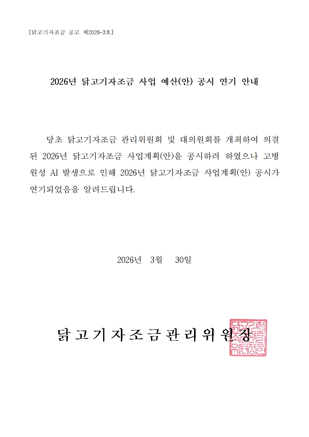 | ÀÛ¼ºÀÚ : °ü¸®ÀÚ(poultryboard@naver.com) ÀÛ¼ºÀÏ : 2026-03-30 Á¶È¸¼ö : 53 | |||