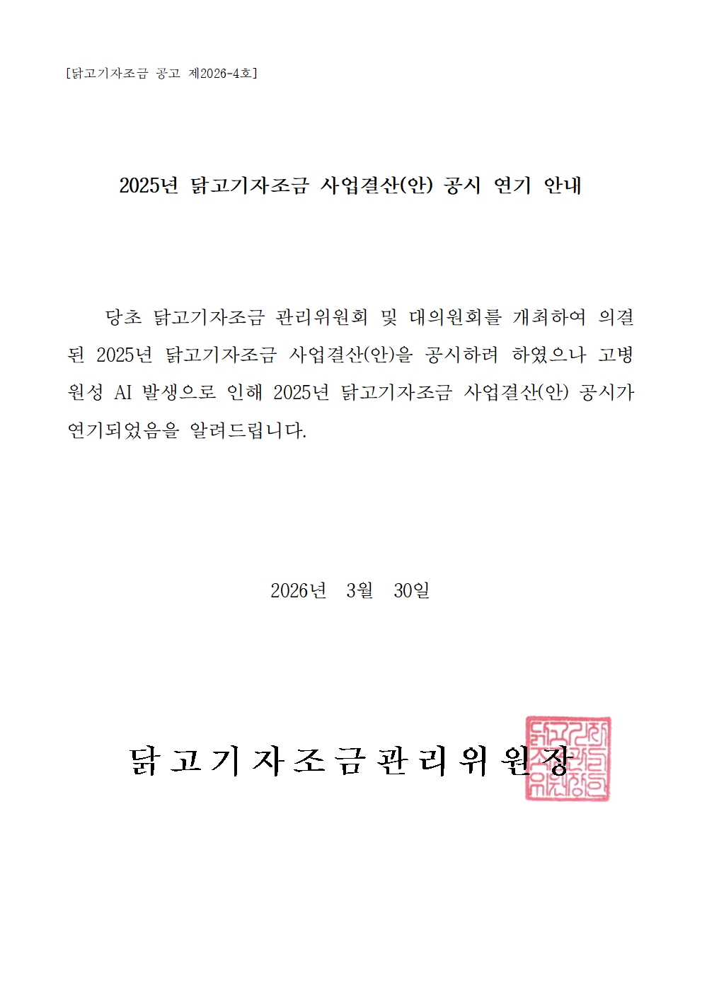 ÀÛ¼ºÀÚ : °ü¸®ÀÚ(poultryboard@naver.com) ÀÛ¼ºÀÏ : 2026-03-30 Á¶È¸¼ö : 53